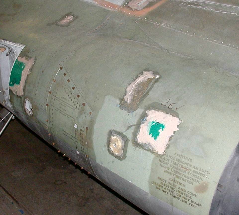 Am rechten Lufteinlaß sind 6 Löcher zu füllen. | |